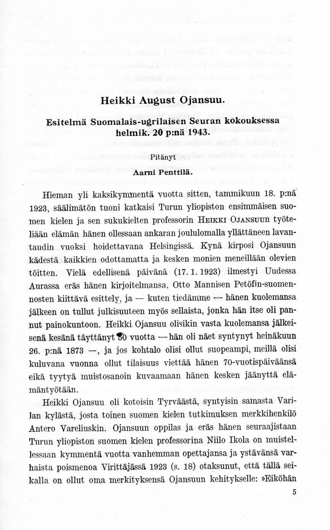 Esitelmä Suomalais-ugrilaisen Seuran kokouksessa helmik. 20 p:nä 1943.