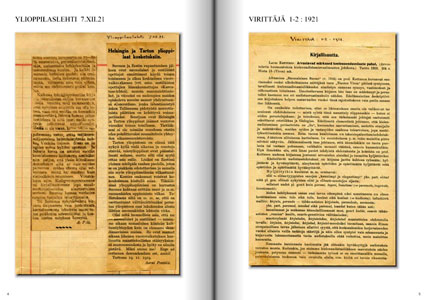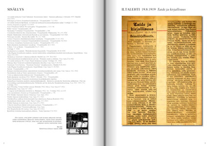 1919 - 1923 Arvostelu teoksesta Väinö Salminen. Suomalainen Inkeri. Suunnan julkaisuja I, Helsinki 1919. Iltalehti 19.8.1919. Helsingin ja Tarton ylioppilaat kosketuksiin. Ylioppilaslehti 7.12.1921. Arvostelu teoksesta Kettunen. Arvustavad märkused keeleuuendusnõuete puhul. Virittäjä 1-2: 1921. Tarton yliopiston avajaiset 1.12.1919. Eesti Üliopilaste Seltsin 50-vuotisjuhla. Ylioppilaslehti s. 113–114. Retki Viroon! Ylioppilaslehti s.86. Suomalais-Virolainen Ylioppilasliitto. Ylioppilaslehti s. 186. Vironkielen lehtorinvirka yliopistoomme. Ylioppilaslehti Pääkirjoitus. N:o 19, 1920. Danske Studerendes Internationale Komite ja sen toiminta. Ylioppilaslehti 9.10.1920. Nykyajan runoutta. Suomen Kuvalehti. N:o 12, 1920. Tarton Yliopiston eläinlääketieteellinen tiedekunta. Ylioppilaslehti 13-14: 1921. Tarton Suomalais-Virolaisen Ylioppilasklubin toiminnasta. Ylioppilaslehti 9.4.1921. Virolaisia ylioppilaita Suomeen ensi kesäksi. Ylioppilaslehti 1921: 153. Kalevalaseuran ensimmäinen vuosikirja. Ylioppilaslehti 26/2 1921. Unkari, Viro ja Suomi. Ylioppilaslehti N:o 5. 1921. Virittäjä. 5. 1920. Suomalaiset ja syrjäänit. Mielenkiintoinen haastattelu. Ylioppilaslehti 30.10.1920. Luku Ragnar Josephsonin uudesta, nuoren tiedemiehen sielunelämää käsittelevästä teoksesta: Imperfektum. Uusi Aura 19.8.1921. Suomen ja viron kieli. Lähennysyrikkeitä. Iltalehti nro 139. 20.6.1921. Yhteissuomalaisen koulukokouksen päivinä. Muutama miete ja ehdotus. Uusi Aura 21.6.1921. Arvostelu teoksesta M.J. Eisen. Daani hindamise raamat. Virittäjä. 6-8. 1920. Pakinaa. Kun Turun terveydenhoitolautakunta ilmoittaa. Uusi Aura 9.10.1921. Itsenäisen Viron historia. "Itsenäisen Suomen" rinnakkaisesitys. Iltalehti 8.10.1921. Luku Ragnar Josephsonin teoksesta: Imperfektum. Uusi Aura 11.10.1921. Szózat. Ylioppilaslehti s. 239. Katujen nimittämiskomitean suunnitelmiin reunahuomautuksiksi pari sanaa. Uusi Aura n. 322. 1922. Suomalainen tiede ja Turun suomalainen yliopisto. Ylioppilaslehti s.43. Viron ja unkarin kielen lehtorinvirat. Ylioppilaslehti s. 119. Kalevalaseuran vuosikirja 1922. WSOY. Helsinki 1922. Ylioppilaslehti. Turun Suomalaisen Yliopiston ensimmäisen kesälukukauden ohjelma. Kokeellisen fonetiikan merkitys murteentutkimukselle. (Kokoova selostus K. Hentrichin artikkelista: Über die Anwendung experimentalphonetischer Methoden auf die deutsche Mundartenforschung. Vox 1921: 159–175.) Virittäjä, 1922. Igon Mössheg. Totuus bolshevismista. Helsinki 1922. Otava. Uusi Aura 4.7.1922. Käsikirjoitus. Uusi Aura 10.7.1922. A magyar nyelvtudomány kézikönyve. Budapest 1922. Arv. Virittäjä 1922, n:o 4-5. Uusi suomalainen yliopisto ja Ylioppilaslehti. Ylioppilaslehti s. 178. Prof. Heikki Ojansuun muisto Unkarissa. Uusi Aura. 1923. Heikki Ojansuu tiedemiehenä. Uusi Aura 19.1.1923. Opetuksellisia aukkoja heimotietouden kasvattamisessa. Kansan Kalenteri 1922. Suomalaisen tieteen suuri voitto. Nuori Voima. 15.1.1923. Heikki Ojansuu in memoriam. Uusi Aura 25.2.1923. Unkarin tieteellisen elämän nykyisestä asemasta. Ylioppilaslehti s. 5–7. Turun Suomalaisen Yliopiston julkaisuja. Uusi Aura. Prof. Kaarle krohn 60-vuotias. Uusi Aura 10.5.1923. Kielellistä iloittelua heimojuhlain johdosta. Turun Sanomat 23.6.1923. |