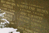 Äidin ottama valokuva isän haudasta. Hauta on Hietaniemen vanhalla hautausmaalla korttelissa XV. Päätykivi on isän vanhempien, Konrad ja Anna Hildénin sekä isän varhain kuolleen nuorimman sisaren. Sen kirjoitukset ovat vuosien mittaan rapistuneet, ja vanhojen nimien sekaan on lisäilty uusia.