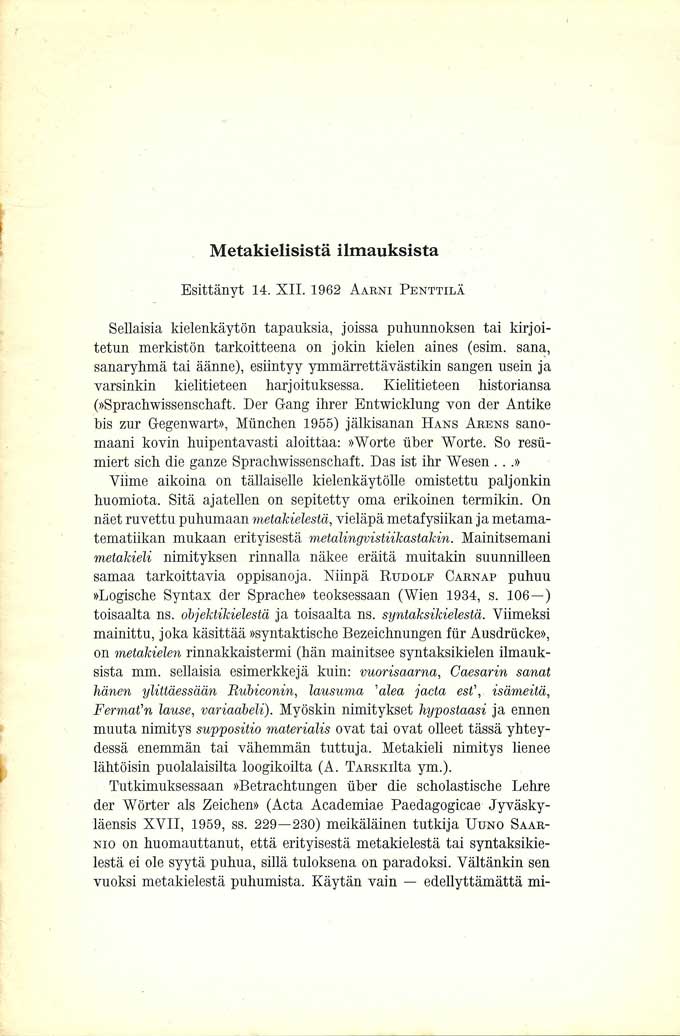 Suomalainen Tiedeakatemia. Esitelmät ja Pöytäkirjat 1962.