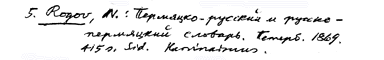 6. Wiedermann, F.J.: Syrjänisch-deutsches Wörterbuch. St.Petersb. 1880. 692 s. Nahkas.