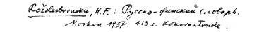 Wirenius, G.W.: Kort Finsk och Swensk Ordbok. Wiborg 1827.